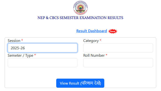 विश्वविद्यालय ने 2025-26 सत्र की ओड सेमेस्टर (विषम सेमेस्टर) परीक्षाओं के रिजल्ट घोषित कर दिए हैं। कई कोर्स जैसे BBA, BCA, MA हिंदी, अंग्रेजी, राजनीति शास्त्र, भूगोल, मनोविज्ञास, शिक्षा, प्राचीन इतिहास, M.P.Ed., B.P.Ed. आदि के रिजल्ट जारी हो चुके हैं और कुछ विषय के रिजल्ट जारी भी हो रहे हैं तो इसके लिए नीचे लिंक अपडेटेड है वहां से चेक करेंगे तो जल्दी चेक हो जाएगा।