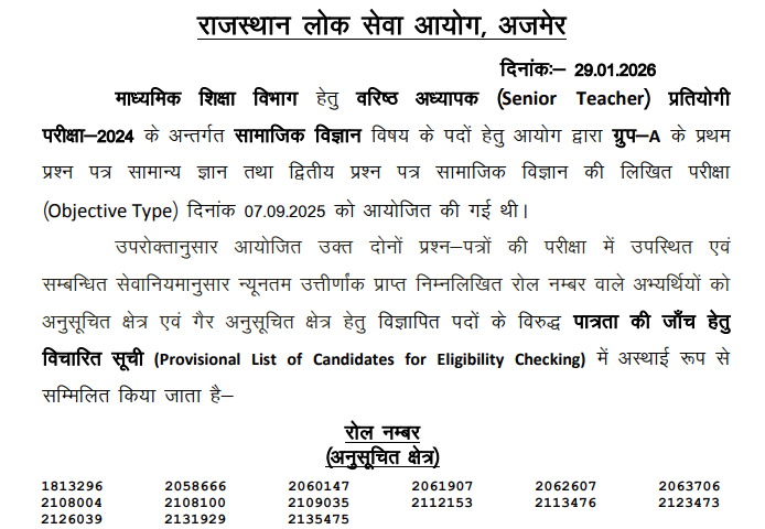 - वर्ष चुनें (2025) और परीक्षा का नाम ढूंढें – Senior Teacher Grade II या संबंधित विषय का स्कोरकार्ड लिंक।