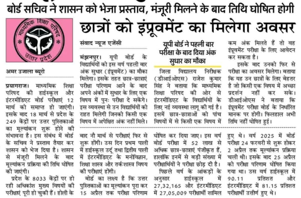 चलिए जानते हैं क्या है यूपी बोर्ड की इंप्रूवमेंट स्कीम और इसमें क्या कुछ अपडेट है कैसे आपको इसको फॉलो करना है कितने नंबर बढ़ाते हैं सारी जानकारी परीक्षा कैसे होती है पूरा डिटेल अंत तक पढ़े।